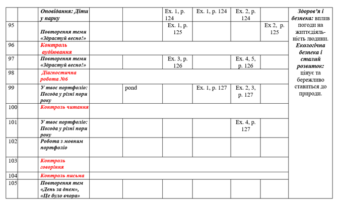 Календарно-тематичне планування для 3 класу на ІІ семестр за підручником О. Карпюк