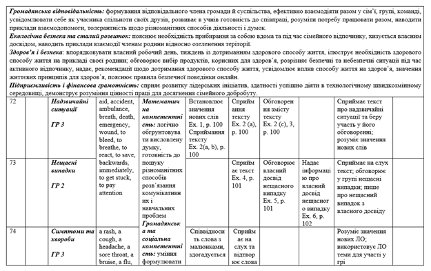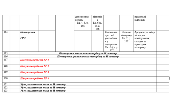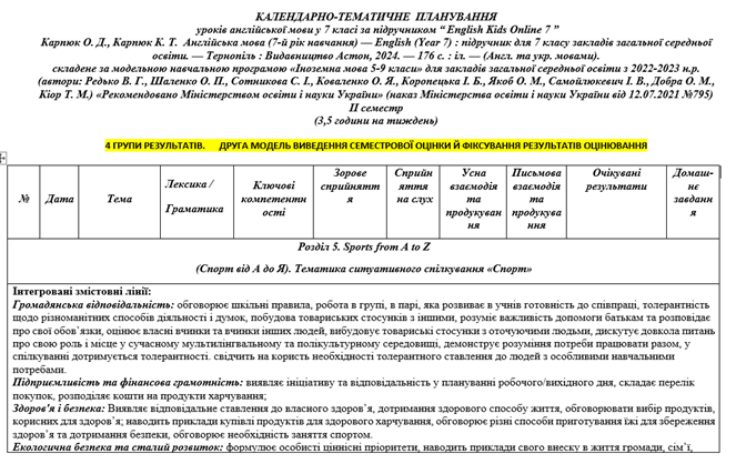 Календарно-тематичне планування для 7 класу на ІІ семестр за підручником О. Карпюк з групами результатів